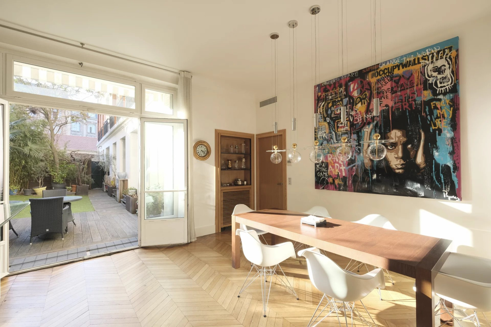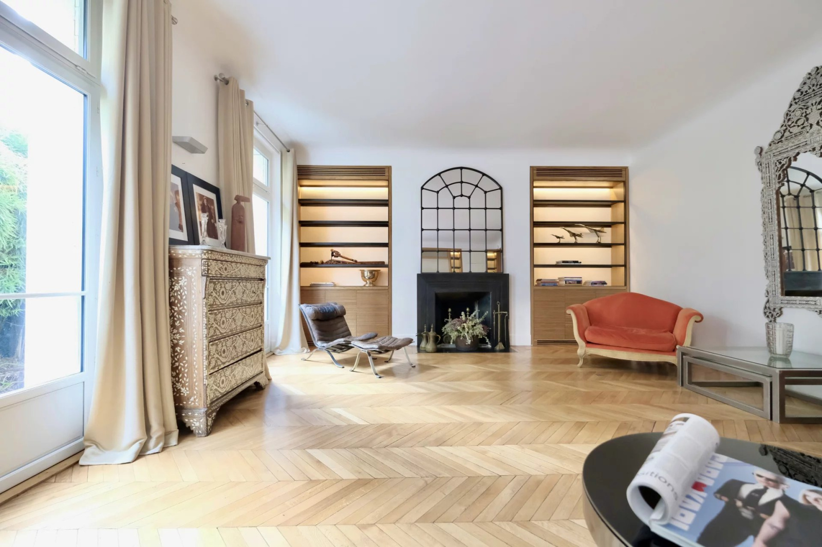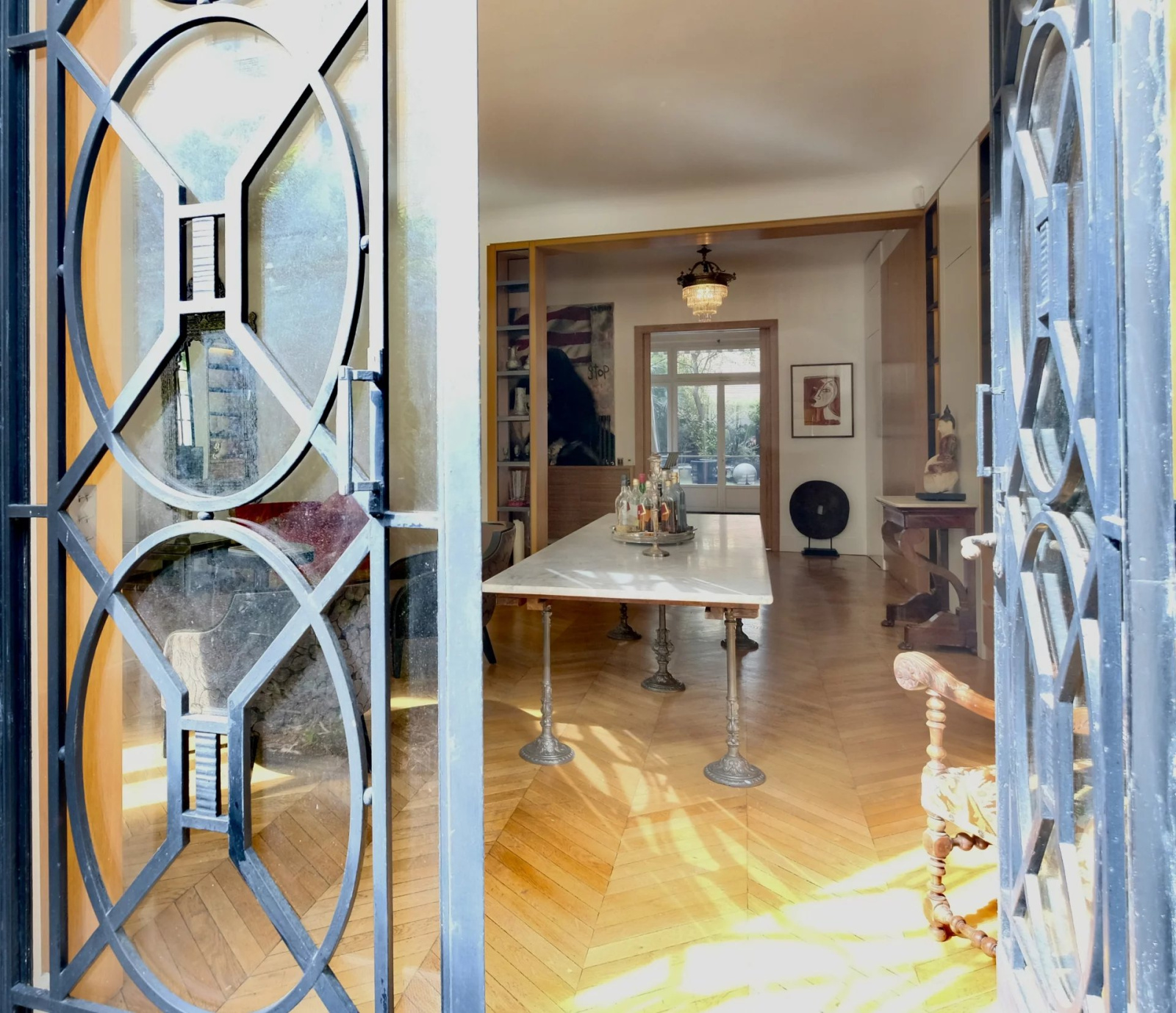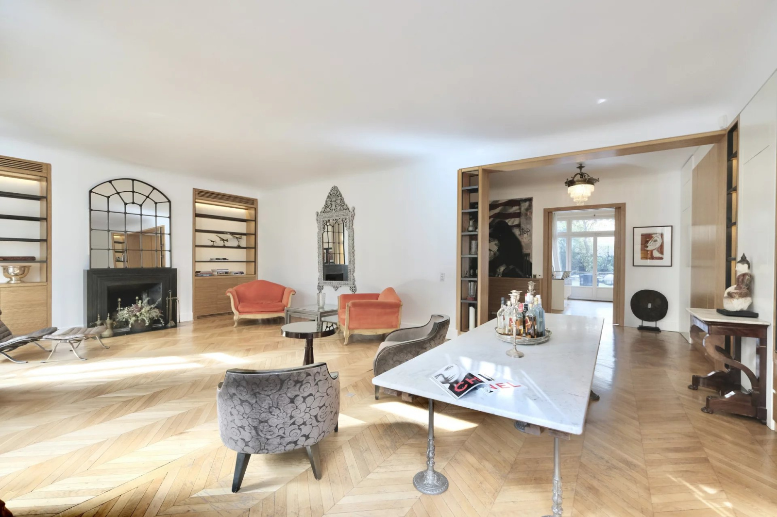 - Paris 16, métro Ranelagh : Appartement standing climatisé de 310 m2 avec 5 chambres, traversant-soleil- Mobiliers de qualité.-Beaux volumes avec entrée cuisine ouverte dinatoire de 35 m2 très bien équipée / jardin - séjour de 60 m2 avec une cheminée - 5/6 chambres-2 salles d'eau- 2 bains - 1 bain de vapeur- 3 wc séparés- buanderie et débarras. cave et parking.Espace vert et terrasse à l'extérieur 160 M2 en plus.